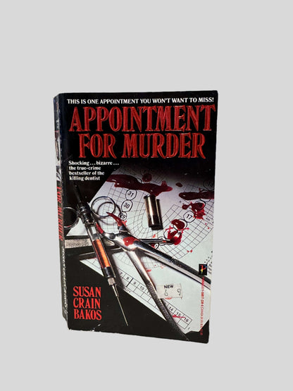 In Appointment For Murder, Susan Crain Bakos reveals the shocking double life of Dr. Glennon Engleman, a respected dentist by day and a ruthless serial killer by night. Bakos masterfully exposes how this cunning predator used marriage as a weapon, manipulating vulnerable women into marrying his unsuspecting victims before orchestrating their deaths for insurance money. This true crime thriller explores Engleman's calculated schemes across two decades, examining the chilling psychology of a man driven by unquenchable greed and how a fatal misstep in his intricate web of deceit ultimately led to his capture. Explore the dark world of true crime and discover a terrifying tale of murder and betrayal in this compelling narrative of a killer hiding in plain sight. Uncover the disturbing truth behind a respected dentist's sinister secret life and his reign of terror in Appointment for Murder.