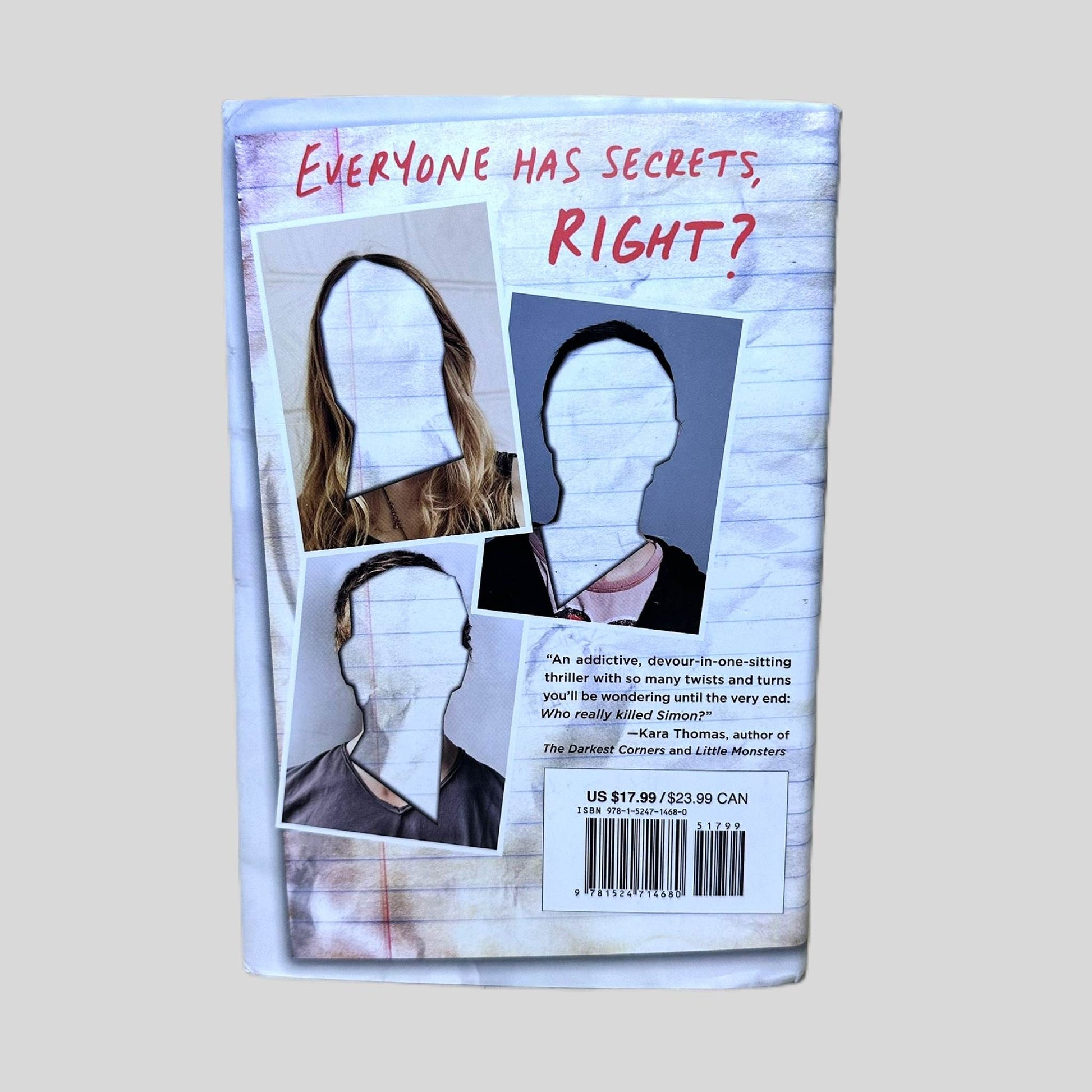 Five students enter detention: Bronwyn, the brain; Addy, the beauty; Nate, the criminal; Cooper, the athlete; and Simon, the outcast. Only four leave alive. When Simon, creator of the school's notorious gossip app, dies unexpectedly, the remaining four become the prime suspects in his murder. As secrets, lies, and betrayals emerge, the "Bayview Four" must fight to clear their names, uncovering a truth more twisted than they could have imagined. This young adult mystery thriller explores the dark side of high school secrets and the lengths some will go to protect their reputations. Perfect for fans of suspenseful reads and twisty mysteries, One of Us Is Lying is a must-read for anyone who loves a captivating whodunit.
